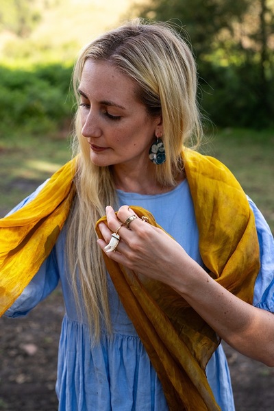 Pure silk, hand dyed with onion skins into a warm golden hue to bring you an elegant and light piece of wearable art - designed to be worn and to bring joy.