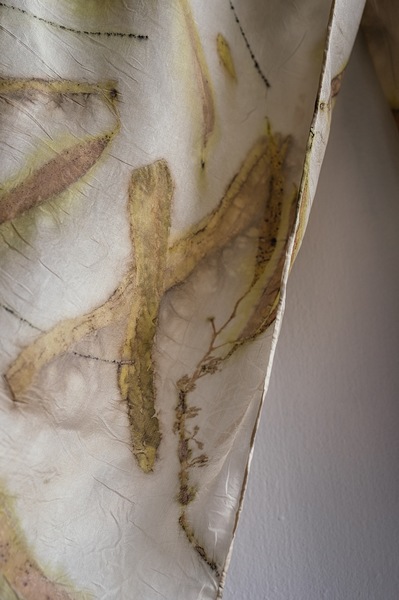 Pure silk, hand dyed with Beefwood, Eucalyptus leaves / - bark into a golden hue with abstract lines and natural shapes to bring you an elegant and light piece of wearable art - designed to be worn and to bring joy.
